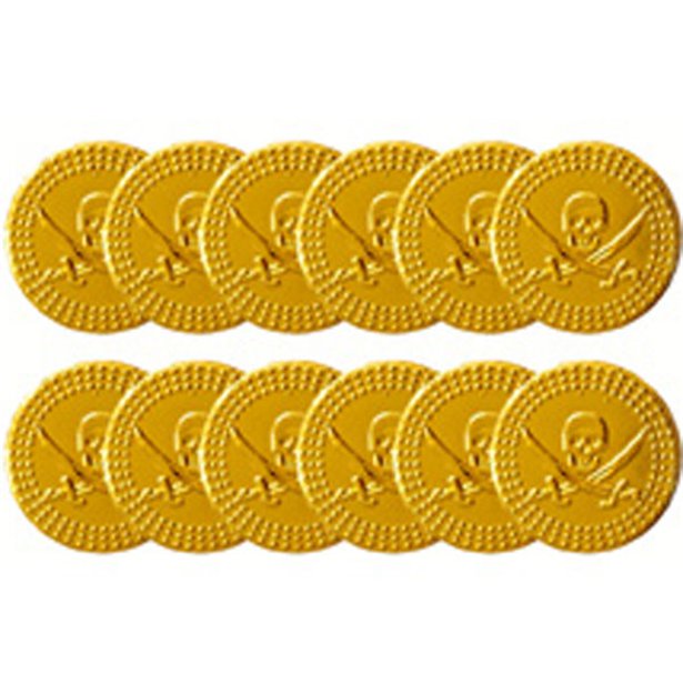 12 stk. guldmønter i plastik til f.eks. pirat udklædningen.