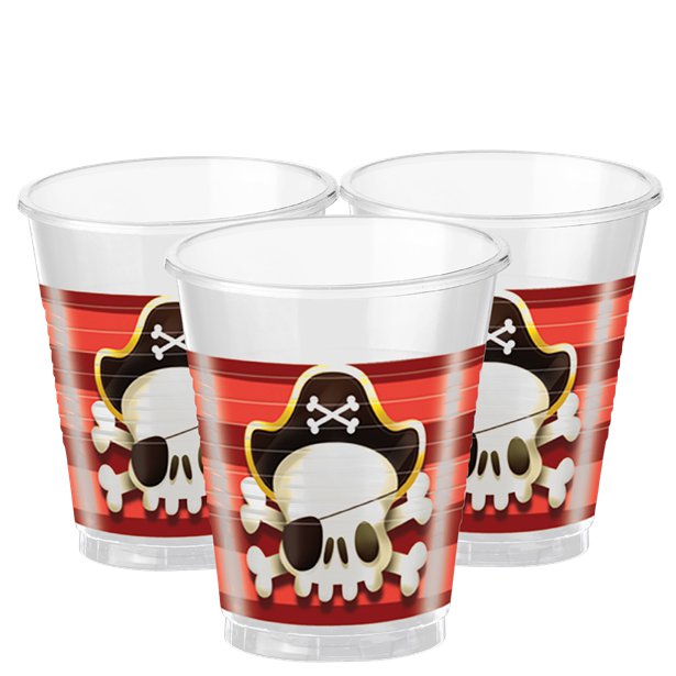 Pirat plastikbægre kan rumme ca. 200ml væske og leveres i en 8-pak.